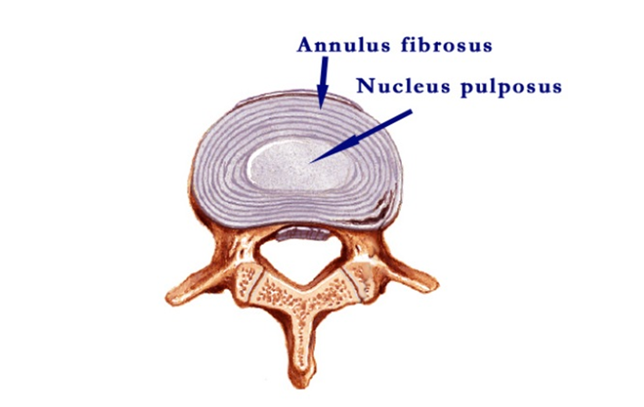 החלק המרכזי בדיסק המורכב מחומר דמוי ג'ל אשר מכיל ברובו מים. גרעין הדיסק פועל כבולם זעזועים של 24 החוליות היושבות אנכית זו על גבי זו, ועמוד השדרה כולו.מעטפת הדיסק (Annulus Fibrosus AF)