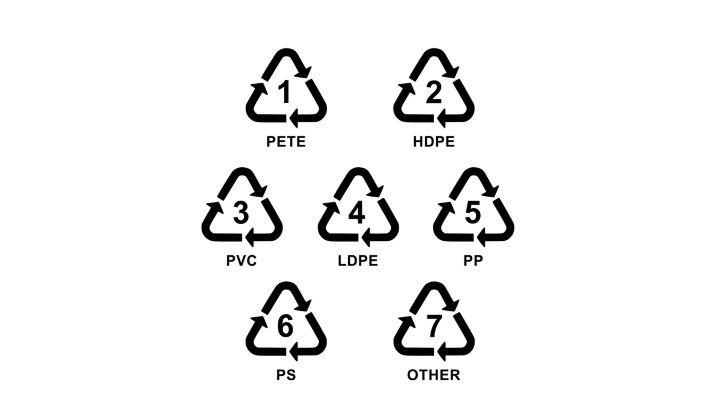 כלי פלסטיק רבים מכילים את סמל המחזור - משולש עשוי חיצים ובתוכו מספר. המספר מבטא את סוג הפלסטיק והחומר שממנו עשוי המוצר על פי הפירוט הבא: