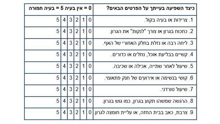 שאלון מדד לריפלוקס לרינגופרינגיאלי: