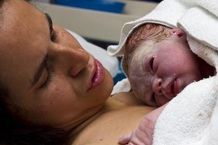 התכווצויות של שרירי הבטן ודחיפות של האם מסייעות למעבר התינוק דרך הנרתיק. כאשר ראש התינוק מופיע בפתח הנרתיק ניתן להוציא את התינוק ולחתוך את חבל הטבור. אם יש קושי ביציאת הראש, מבצעים חיתוך ברקמה שמסביב (פיום ערווה - אפיזיוטומי). בשלב הסופי נפלטת השליה על-ידי ההתכווצויות הרחם הנמשכות.