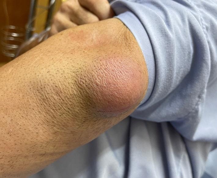 במרפק - יכולה להיגרם מפציעה או מלחץ קבוע על המרפק, למשל כשנשענים על משטח קשה.
