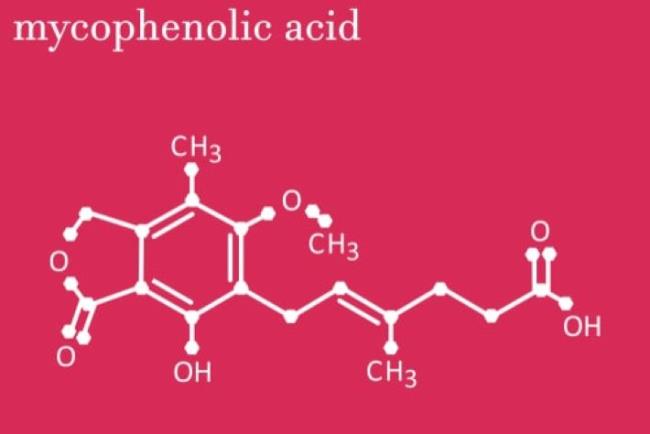 בשנות ה-70 נתגלה כי החומצה המיקופנולית מעכבת ייצור של לימפוציטים, תת-קבוצה של תאי דם לבנים, על-ידי כך היא מונעת את תגובת מערכת החיסון של הגוף כנגד השתל הזר.
