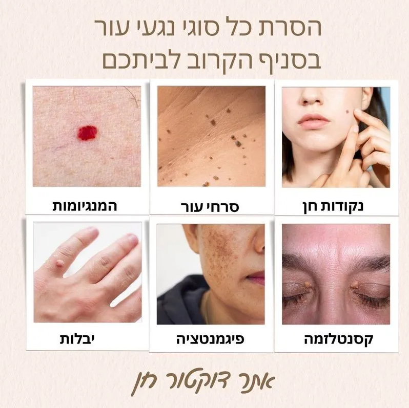 - הסרת נגעי עור – טיפולים מתקדמים להסרת סרחי עור, נקודות חן, קונדילומה והמנגיומות בצורה מקצועית וללא כאבים.