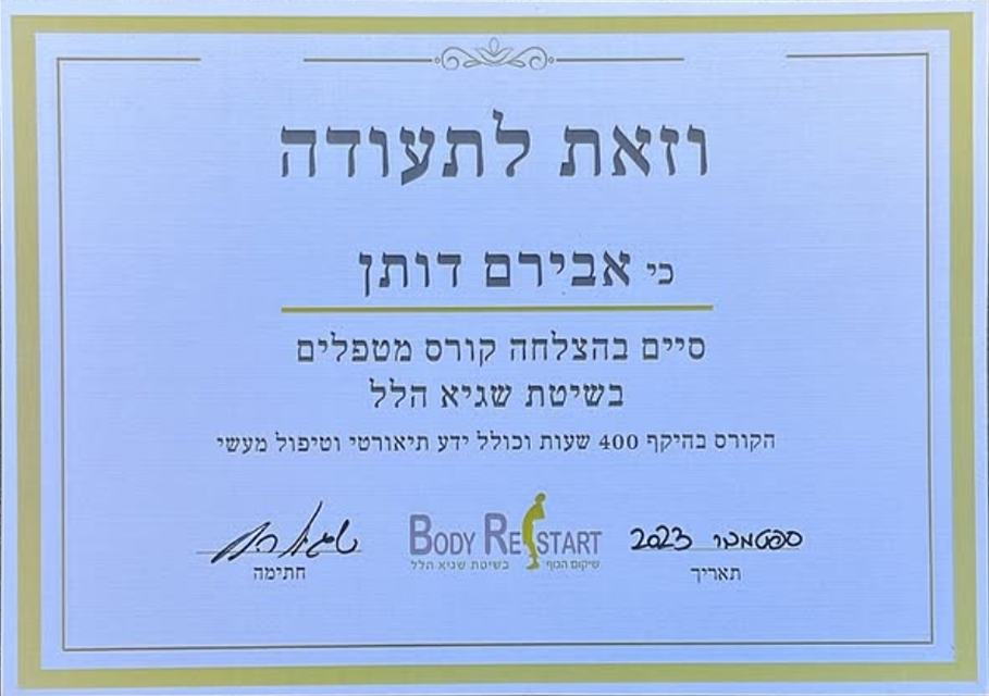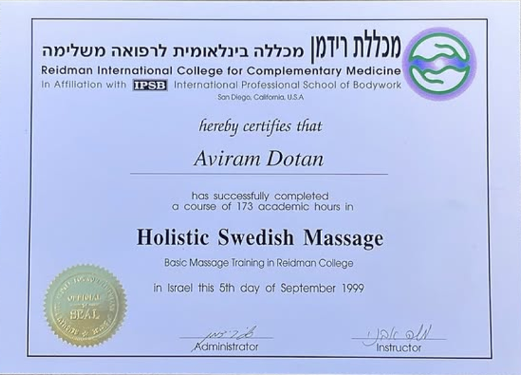 שמי אבירם דותן, מטפל מוסמך המקדיש את דרכו לסיוע לאנשים המבקשים להגיע לאיזון, רוגע ובריאות מיטבית – בגוף ובנפש. מתוך אהבה אמיתית לעולם הריפוי ההוליסטי, אני מתמחה בכוסות רוח וב-עיסוי הוליסטי, ומעניק טיפולים מותאמים אישית שנועדו להשיב לגוף את החיוניות וההרמוניה הטבעית שלו.