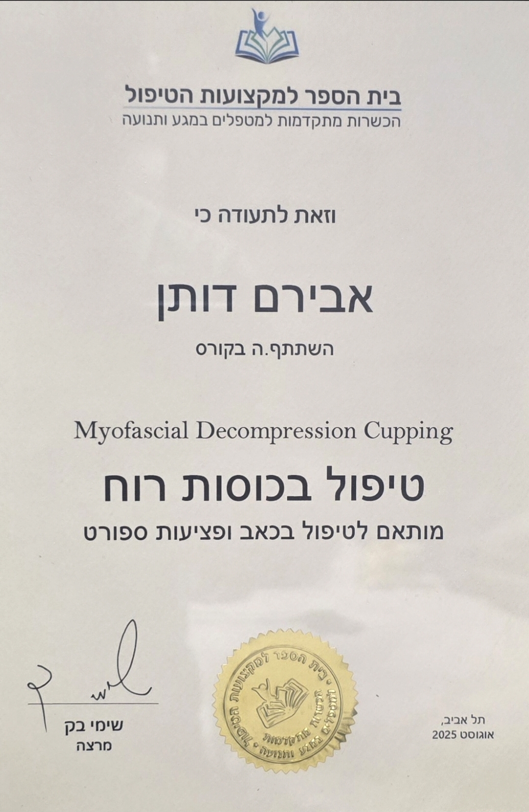 - תחומים: כוסות רוח , רפואה משלימה , עיסוי , טיפול בכאב