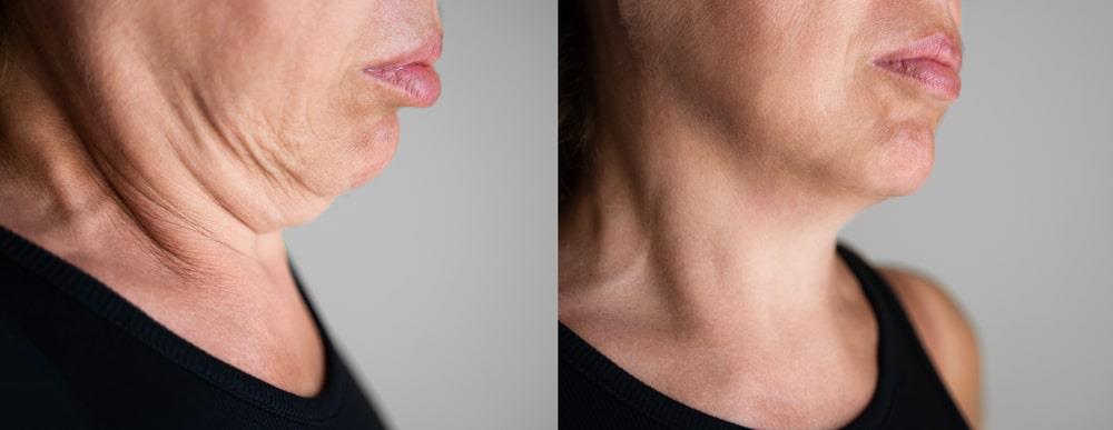 - עור רפוי ועודפי שומן בצוואר שמייצרים מראה של סנטר כפול.
