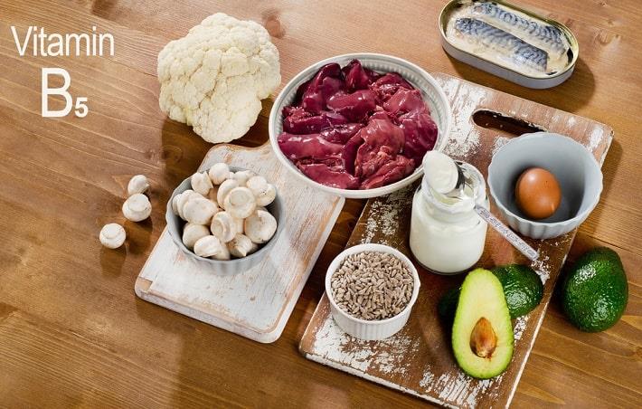 חומצה פנטותנית מצויה כמעט בכל הירקות, הדגנים והמזון מן החי. כבד, כליות, לב, דגים וחלמון ביצה הם מקורות טובים. גם שמרים, נבט חיטה ומזון מלכות (של דבורים) עשירים בויטמין זה.